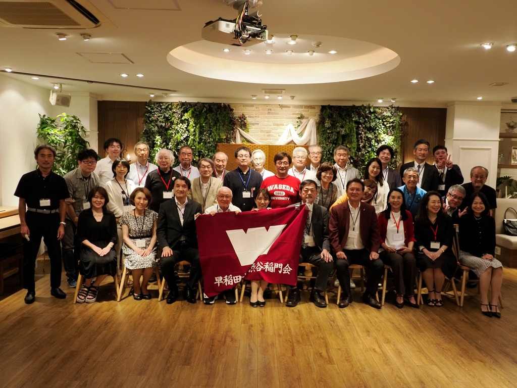 最後は大谷政明会員のリードによる校歌「都の西北」の大合唱をし、齊藤弘樹副会長が中締め、記念撮影を実施し、散会となった。